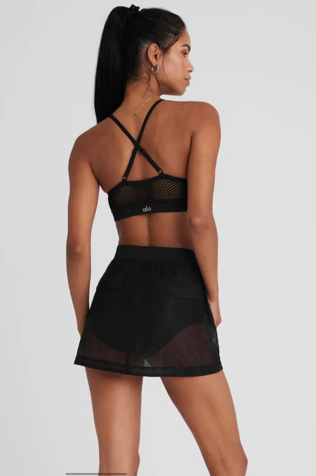 Give your look a breath of fresh air in this bra, made from a stretchy fishnet fabric with a front lining for coverage. It has a supportive underbust band, a subtle V-neck and adjustable straps that crisscross in back. Take it for a spin under a blazer or with the Sheer Effusion Skirt for the ultimate eyes-on-you moment.