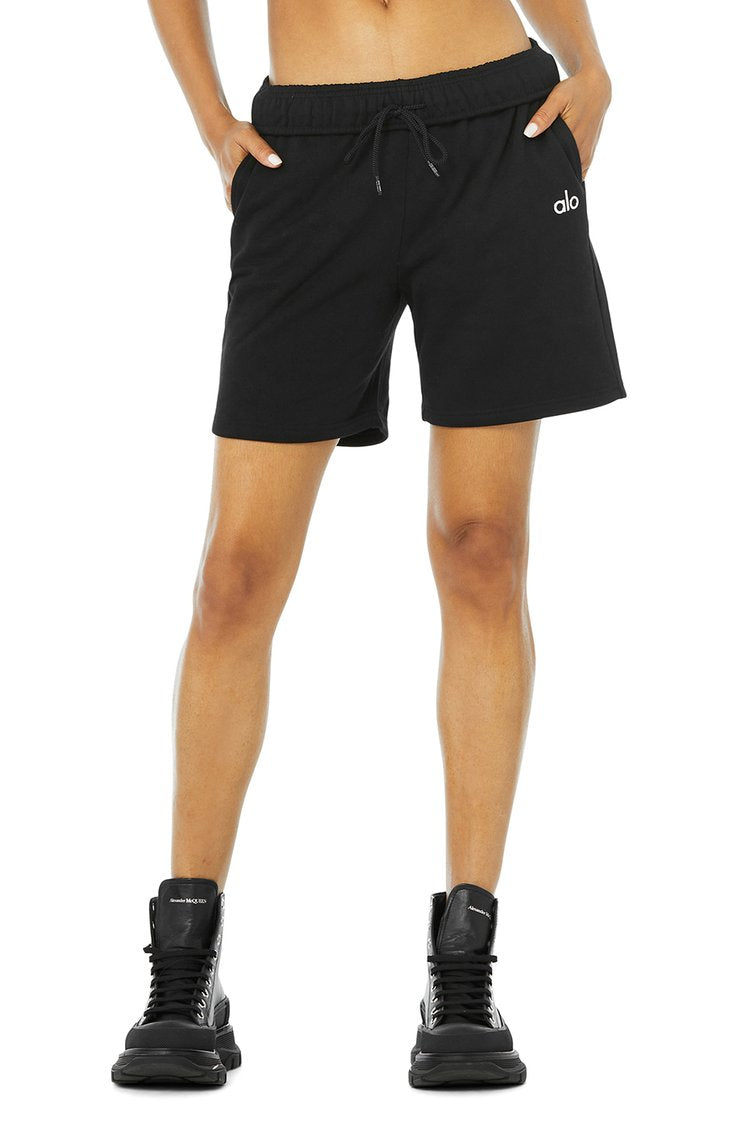 Short & so sweet! The Accolade Sweat Short in soft, diagonal light-brushed fleece is the ultimate sweat short for right now, with a 6” inseam, cinching elastic waistband & chrome logo detailing. Wear it to-and-from with sleek Alo Slides and the Accolade Hoodie to make it a set.